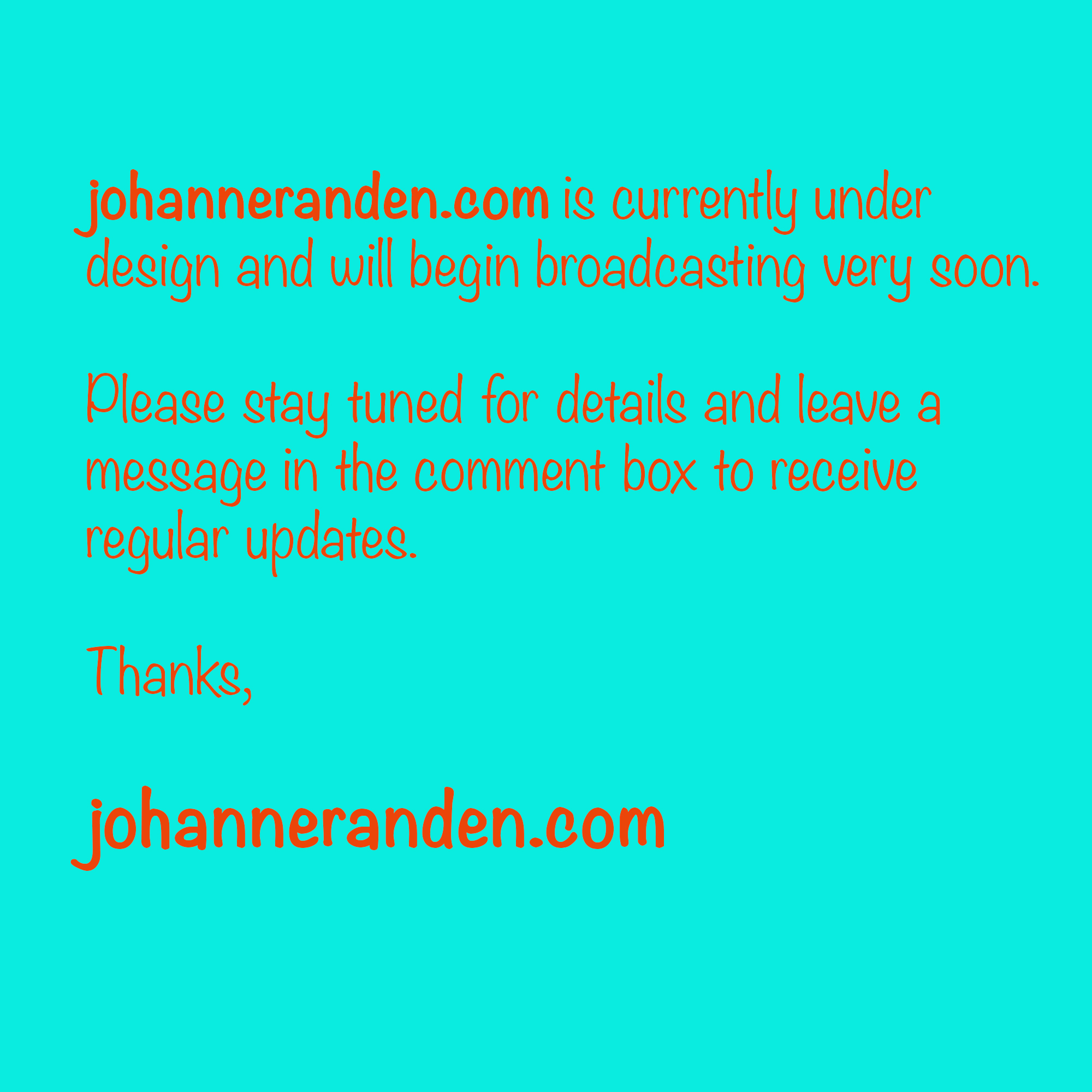 johanneranden.com Is Currently Under Design johanneranden.com Is Currently Under Design johanneranden.com is currently under design and will begin broadcasting very soon. Share this: Click to share on X (Opens in new window) X Click to share on Facebook (Opens in new window) Facebook Like Loading... Related Posted on October 27, 2014October 27, 2014